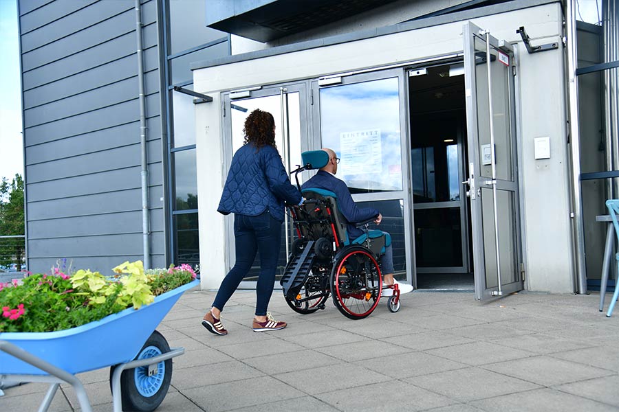 Steigungen und Gefälle können mithilfe der Schiebehilfe, die an die meisten manuellen Rollstühle und Sitzschalenfahrgestelle angebracht werden kann, problemlos bewältigt werden. Rollstuhlnutzer und Begleitpersonen können so mehr Mobilität und Freiheit genießen. Das elektrisch angetriebene Board gibt mit einem hohen Maß an Kraft, Sicherheit und Zuverlässigkeit beim Befahren von unterschiedlichen Terrains. Die Montage des Antriebes ist einfach und erfolgt einmalig an das jeweilige Rollstuhlsystem. Die Demontage erfolgt mit einem Handgriff und ist jederzeit durchführbar. Für den Fall, dass der Rollstuhl oder das Sitzschalenfahrgestell, z.B. beim Betreten eines Supermarktes, per Hand geschoben werden muss, kann das Board am Rollstuhl hochgeklappt werden und verbleibt am Rollstuhl.